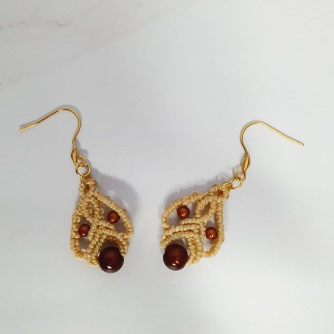 Polyfantaisie vous présente ses boucles d'oreille Bella en micro-macramé.