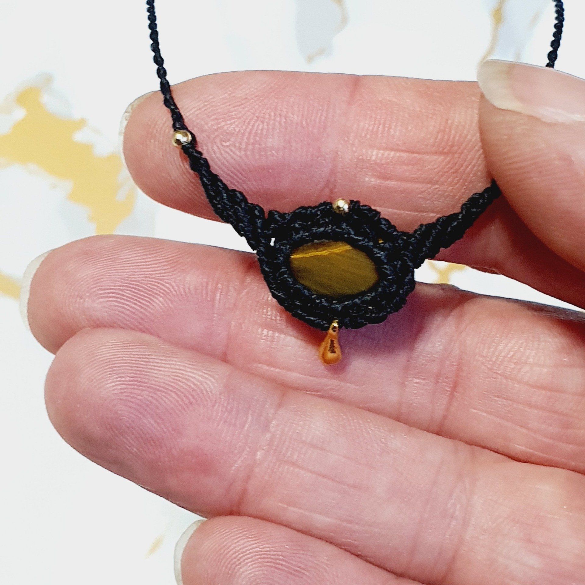 Découvrez le collier "Murmure Terrestre", un bijou intime et puissant, confectionné avec passion en micro-macramé. Au cœur de cette création délicate réside une magnifique pierre d'Œil de Tigre, soigneusement sélectionnée et sertie à la main.